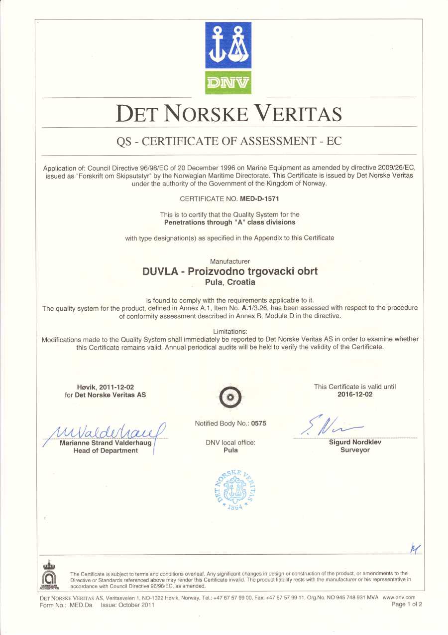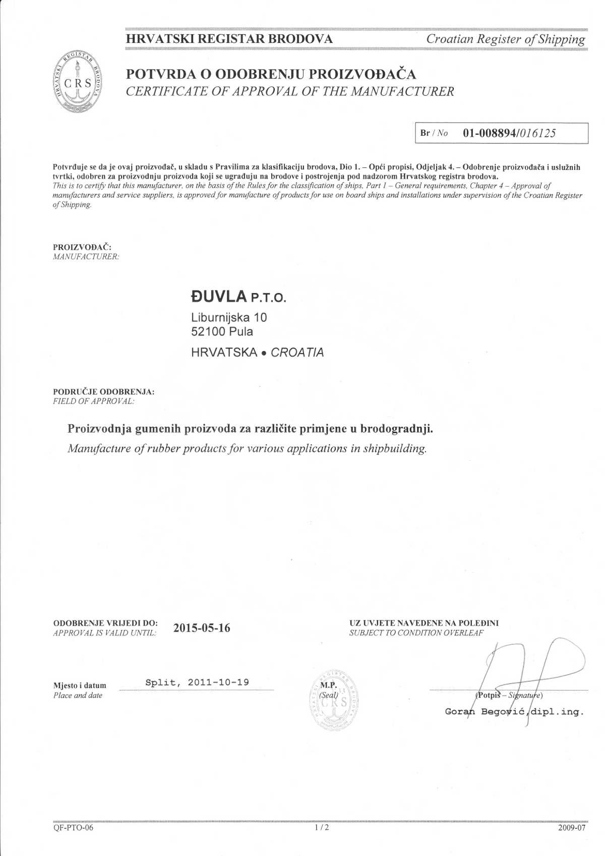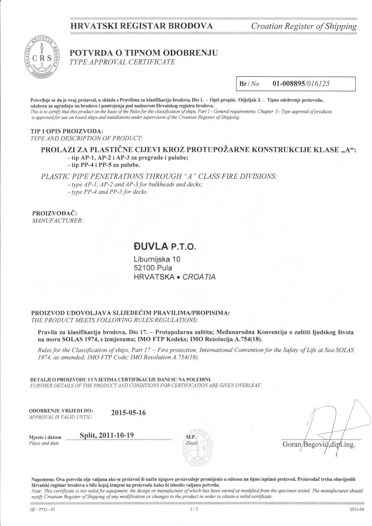 - Potvrda o tipnom odobrenju - prolazi za plasticne cijevi