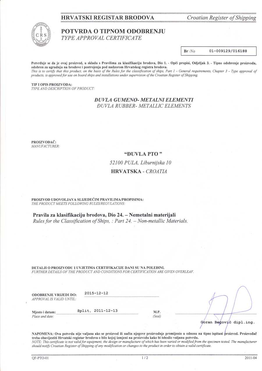 - Potvrda o tipnom odobrenju - gumeno/metalni elementi