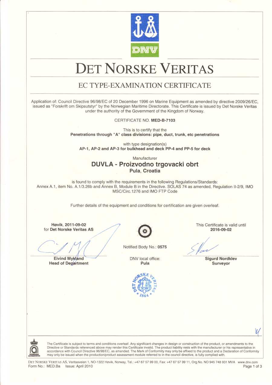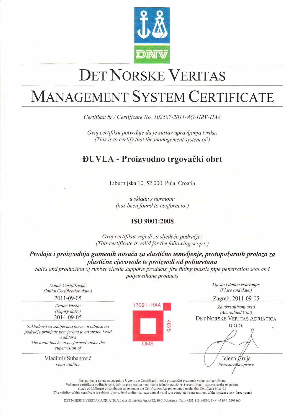- Potvrda o tipnom odobrenju - prolazi za plasticne cijevi